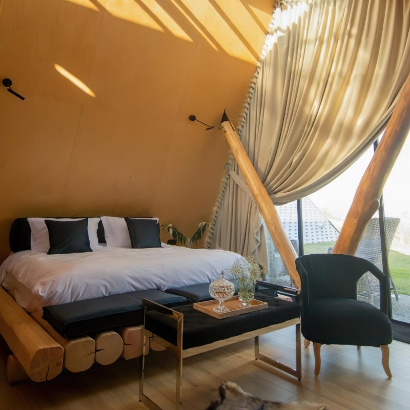 Το 3HILLS BOUTIQUE διαθέτει τέσσερις σουίτες, στις οποίες χρησιμοποιήθηκε πελεκητή ξυλεία για τα στηρίγματα της μεταλλικής κατασκευής λόγω της μεγάλης τους αντοχής. Επίσης κόντρα πλακέ σημύδα στις οροφές, τοποθετήθηκε πάτωμα laminate ώστε να δώσει μια φυσικότητα και να φωτίσει ο χώρος. Τέλος κατασκευάστηκαν κρεβάτια από πελεκητή ξυλεία και για τις τέσσερις σουίτες που έδωσαν ένα πιο country ύφος.