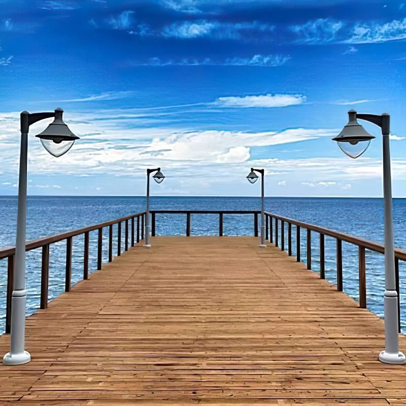 Επιλέχθηκε βάσει από Ιρόκο, ξύλο το οποίο είναι γνωστό για την αντοχή του στο νερό και από επάνω τοποθετήθηκε deck πεύκου. Είναι ένα ξύλο ιδιαίτερα ανθεκτικό στην σήψη, την προσβολή εντόμων και τερμιτών καθώς επίσης και στην υγρασία. Είναι σταθερό και πολύ ανθεκτικό αλλά και αρκετά εύχρηστο, με καλές αντοχές σε στατική κάμψη καθώς και σε θλίψη.