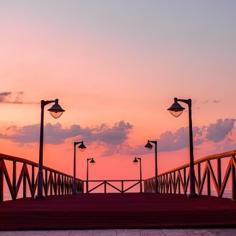 Περιμετρικά της προβλήτας, τοποθετήθηκαν κάγκελα από ξυλείας πεύκης, βαμμένα στο ιδανικό χρώμα ώστε να συνδυάζονται αρμονικά με τα υπόλοιπα στοιχεία.