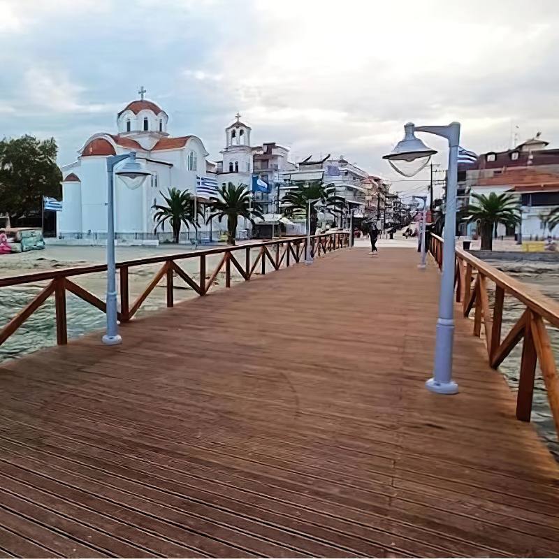 Σε συνεργασία με τον δήμο Κατερίνης, προμηθεύσαμε πάτωμα deck πεύκου για την προβλήτα στην Παραλία Κατερίνης, που βρίσκεται δίπλα στον Ιερό Ναό Αγίας Φωτεινής. Το ζητούμενο ήτανε η διάρκεια στο χρόνο, καθώς και αντοχή στις συνθήκες που επικρατούν όλο τον χρόνο λόγω της παρουσίας του θαλασσινού νερού.